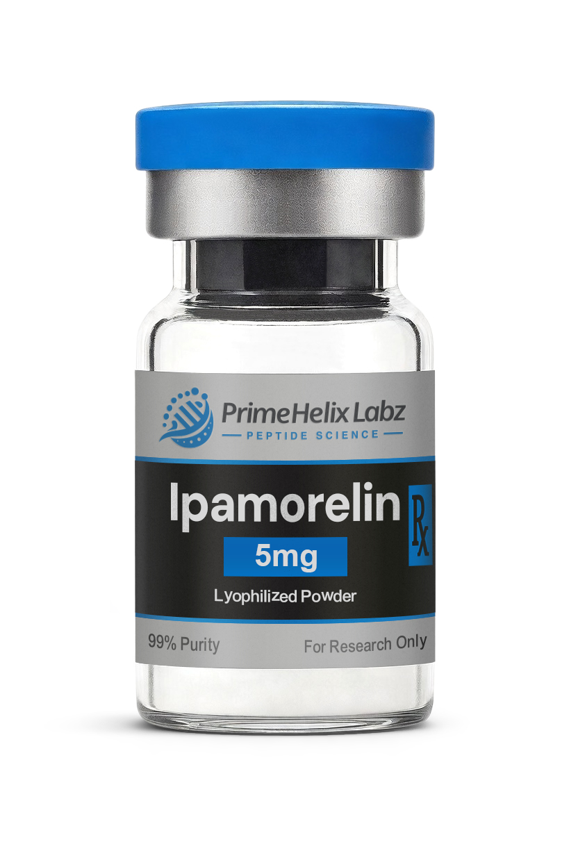 Ipamorelin is a synthetic pentapeptide classified as a growth hormone secretagogue. It is known for its selective interaction with the ghrelin (GHS‑R1a) receptor, making it a frequent subject in research focused on pituitary signaling, peptide selectivity, and hormone‑modulating pathways. Its targeted receptor activity distinguishes it from earlier generations of secretagogues.